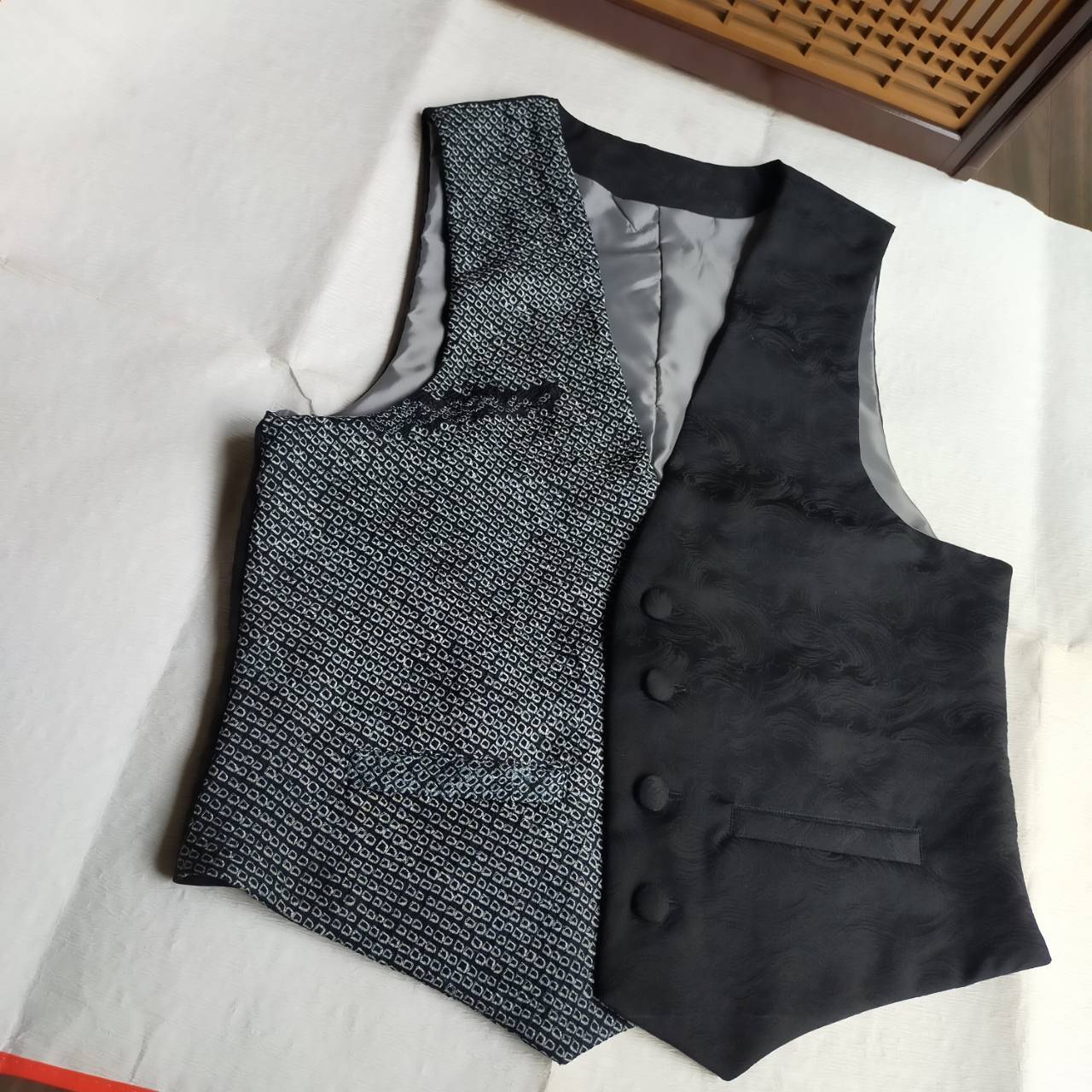 こちらのメンズベストは、女性用羽織を解いて製作しました。