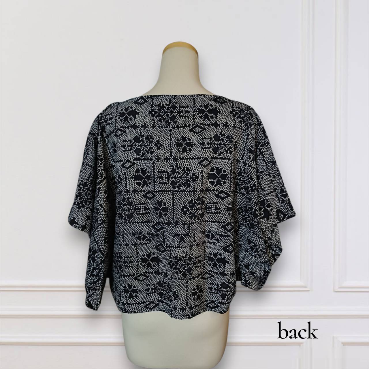 このドルマンブラウスは、きものを解いた反物でリメイクしてハンドメイドで作られた一品です。