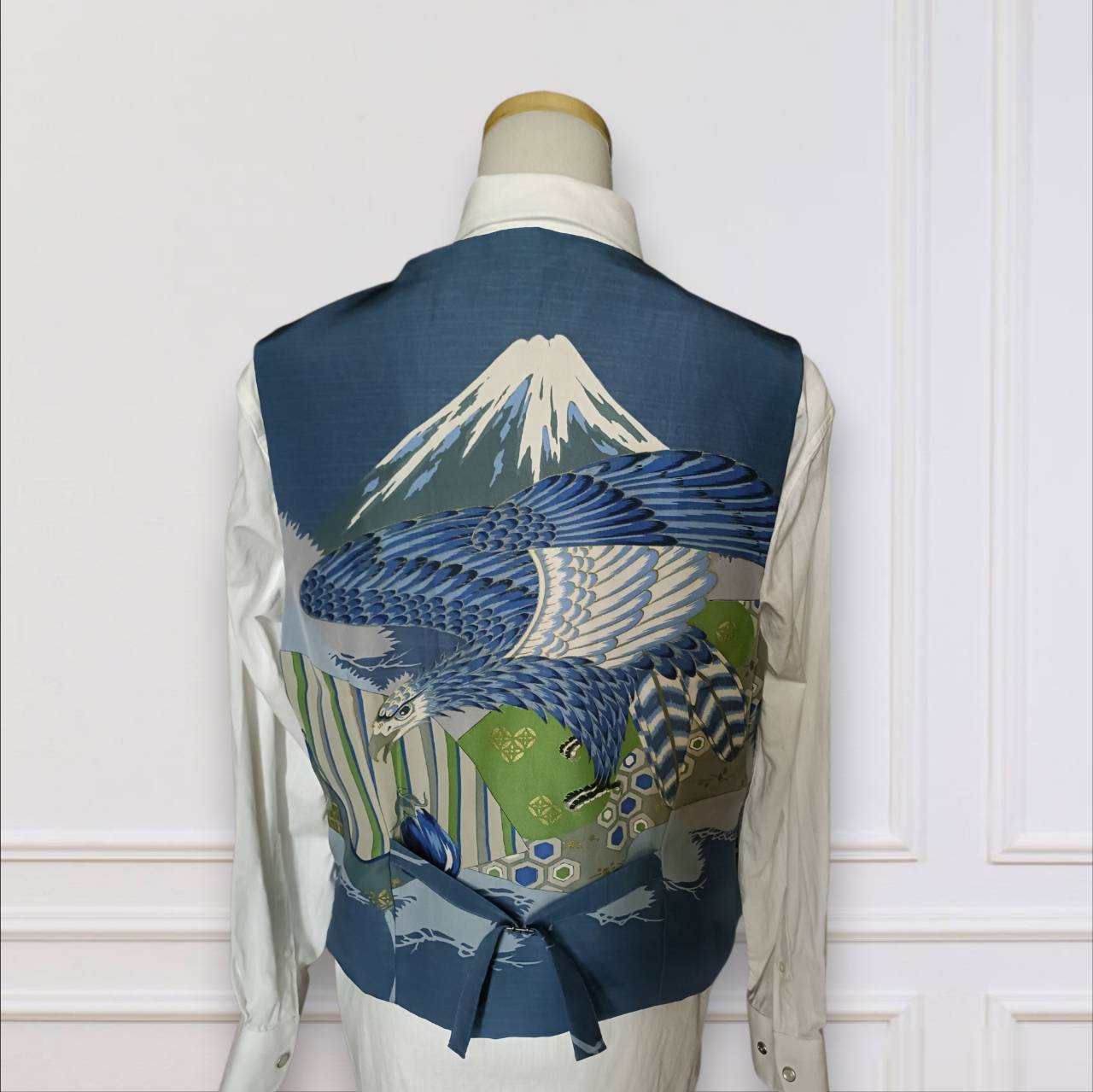 こちらのベストは、縁起の良い柄として有名な一富士二鷹三茄子柄!