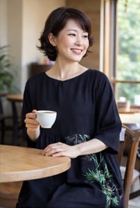 エレガントなケープスリープが大人の女性らしさを引き立て、ゆったりとしたサイズ感で着心地も軽やかです。
