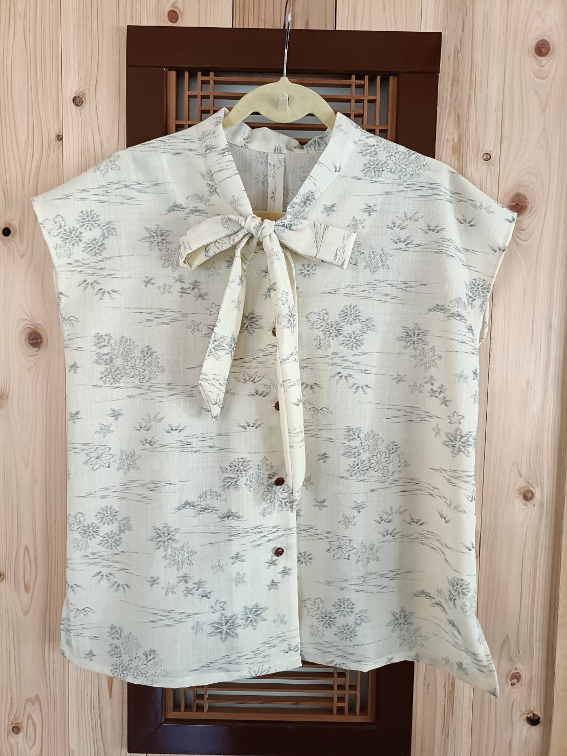 0045 フレンチボータイブラウス 白 小紋